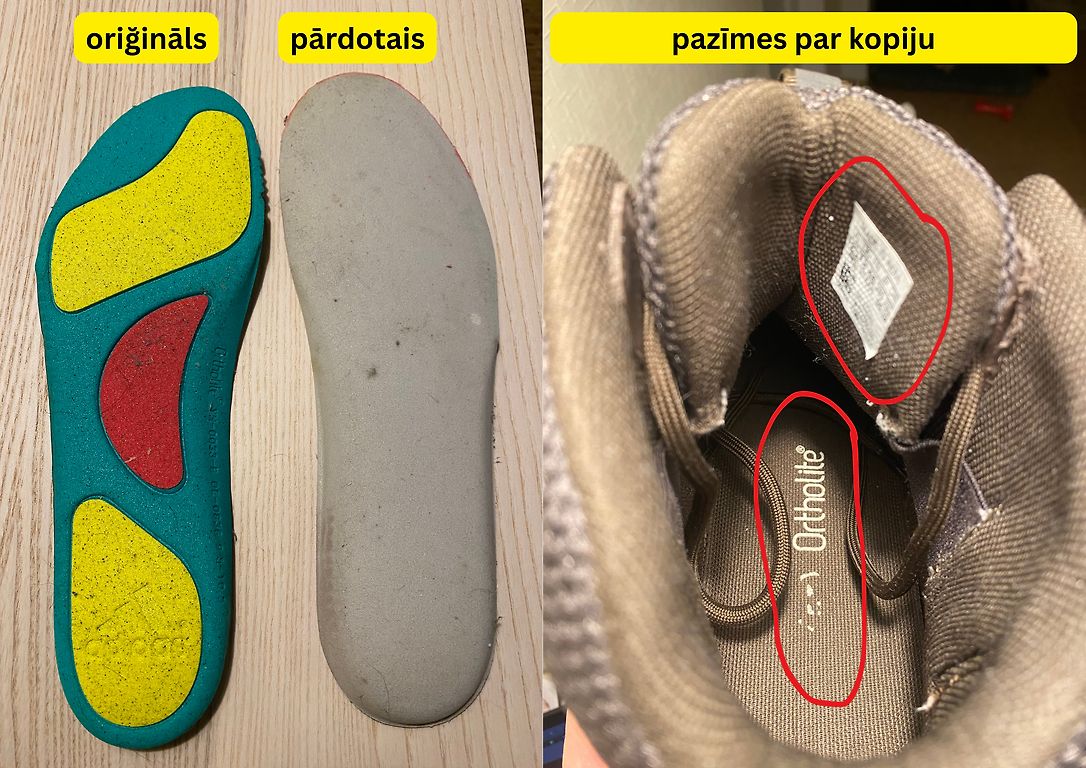 Iegādājos zābakus, kas tika pārdoti kā oriģināli, taču saņemtā prece neatbilst oriģinālam. Ir vairākas acīmredzamas pazīmes: nepareiza iekšzole un tās materiāli, neatbilstoši šņoru gali, iekšējā izmēra birka, kā arī kopējā izpildījuma kvalitāte.