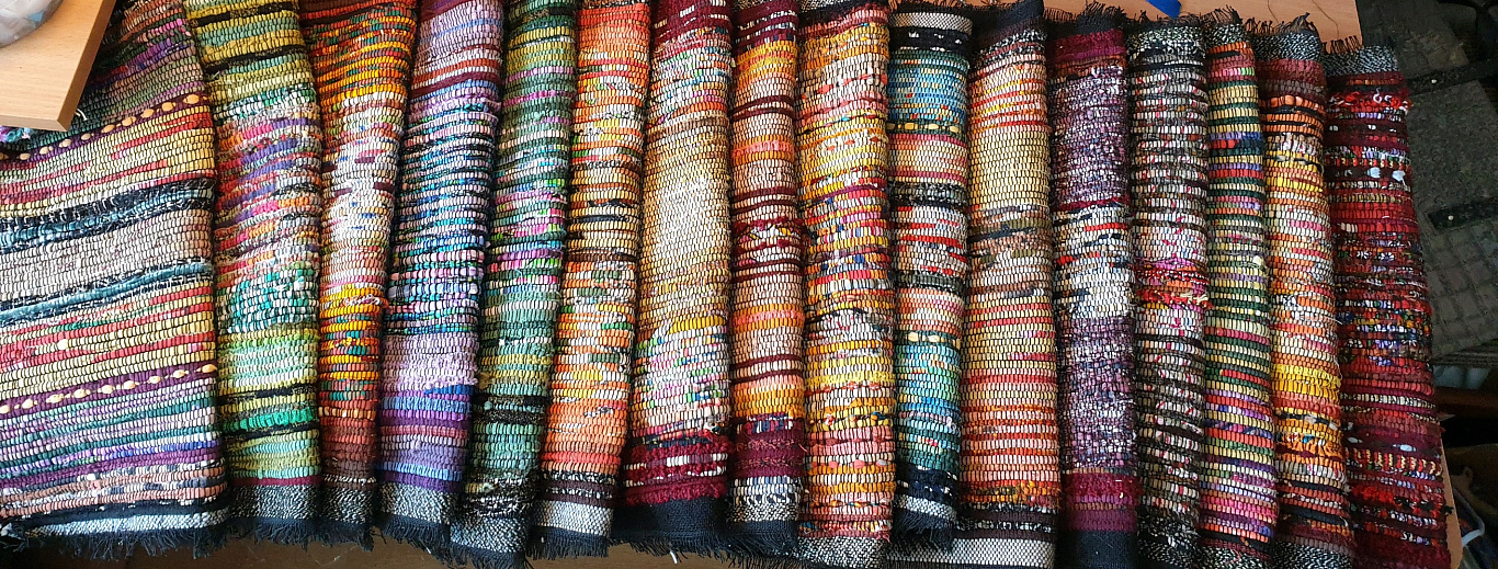 Ir grīdas austie tepiķi(saucamie zirgu deķis-lupatnieks), krēslu, dīvāju pārklāji, austi no vilnas dzijas. Visi darbiņi ir manas mammas -87.gadi (ar aušanas pieredzi-46 gadi)...dažādos izmēros un krasās. Cenas sākot no 6.€(liekami uz krēsla, pirts lavas-padirsenītes). Tepiķi 0.70 cm plati(stelles tik platas), un garumi dažādi. 1 m cna-30.€. Ja būs interese, būs arī bildes