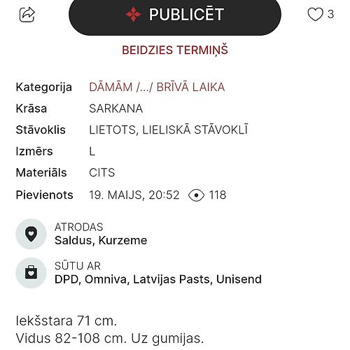Meklēju apģērbu L izmērā – interesē T-krekli, jaciņas, žaketes utt. Bikses derētu gan L, gan XL izmērā (atkarībā no modeļa).