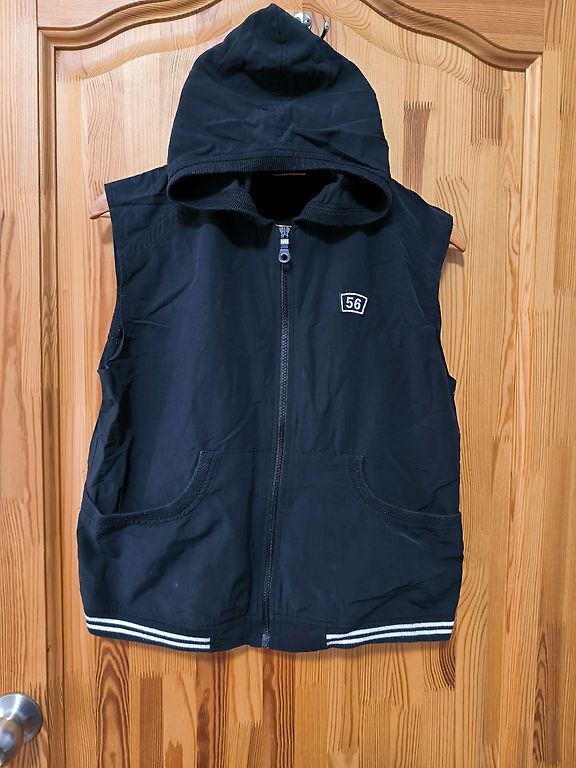 Jakas ar kapuci melnā krāsā uz l/xl izmēru.