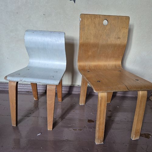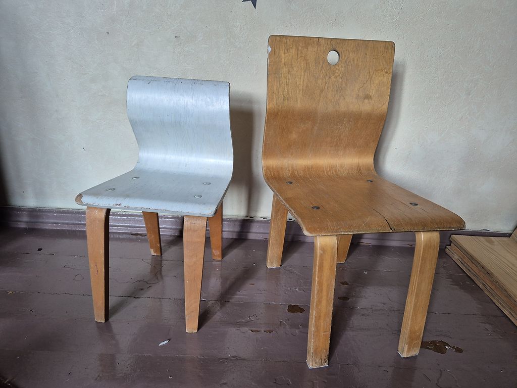 Atdodu divus saplākšņa krēsliņus, cienījamā vecumā un sirsnīgi lietoti. Ar nelieliem defektiem. Varbūt kādam vintage mēbeļu fanam noder bērnistabai. Baltais ir pārkrāsots ar lineļļas krāsu. Abus ir iespējams slīpēt, krāsot, nav nekāda kartona mēbele. Iztur arī pavieglāka piaugušā svaru.