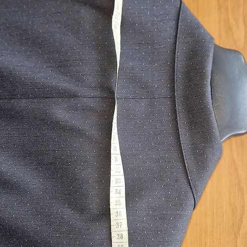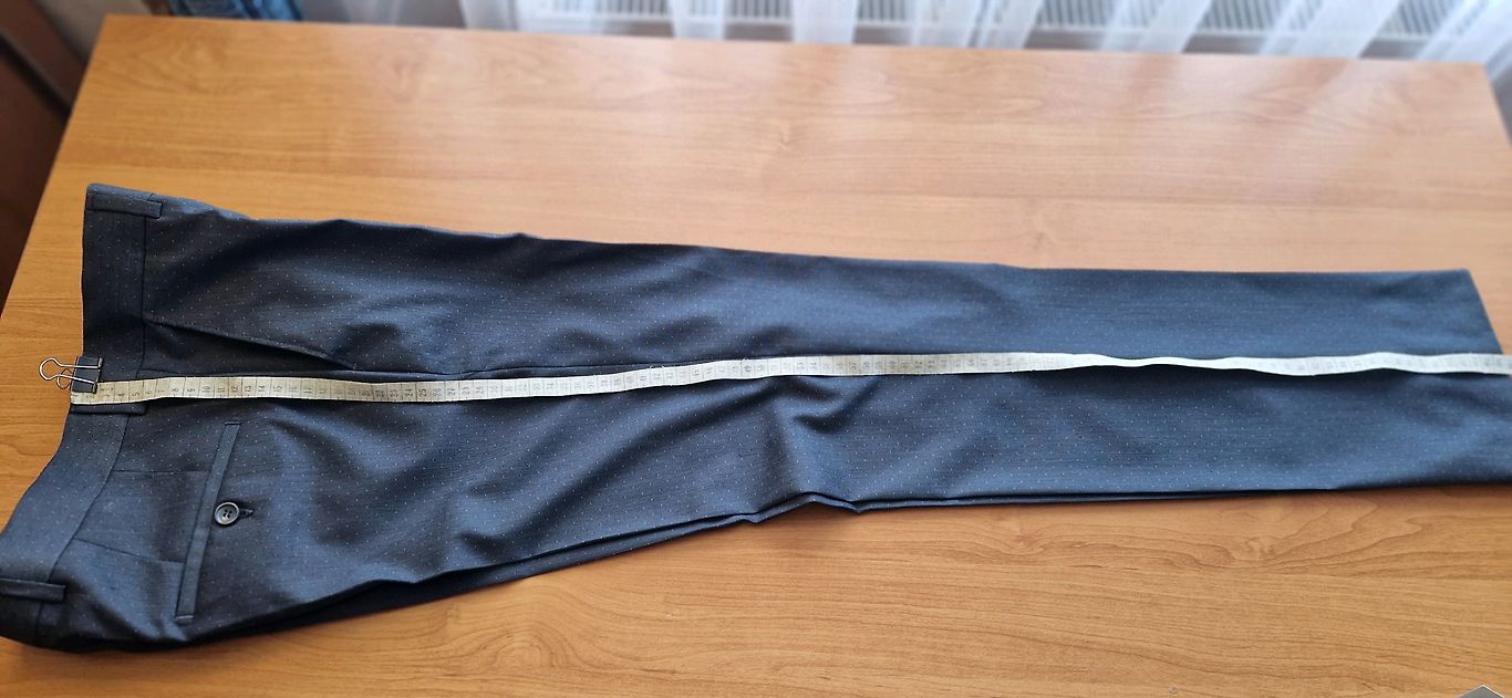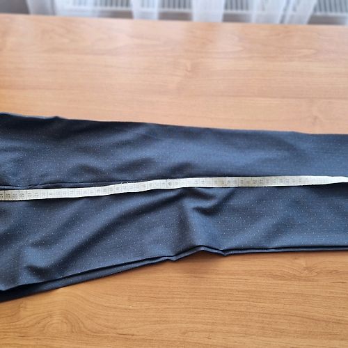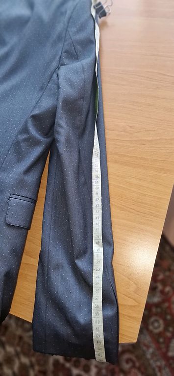 Lūdzu norādīt cenu, bikšu garums,viduklis. Žaketei plecu platums, piedurknes garums.