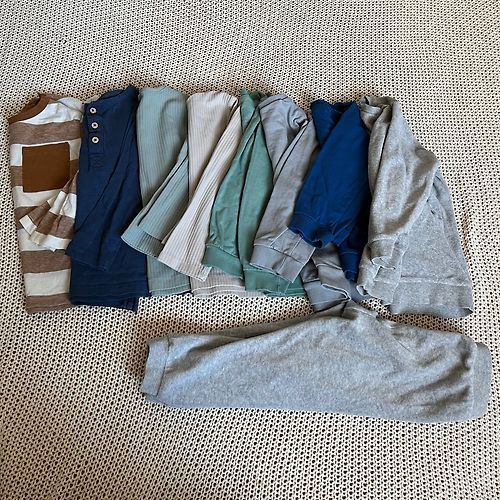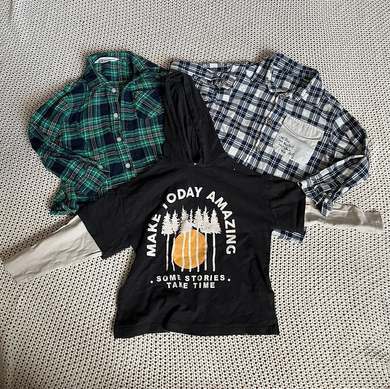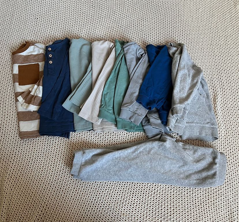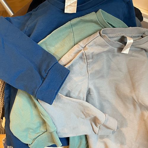 Viens defekts apvilkts, viens baltais krekls nav tik spilgti balts vairs. Vietām ir savēlušies bumbulīši, bet vizuāli labā stāvoklī