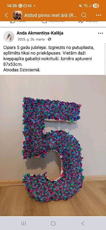 Meklējam ap metru augstu jubilejas ciparu 5