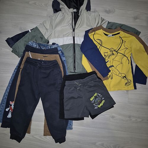 alise.deToday, 15:54Nike jaka 104/110 (4-5 gadi). Vietam audums ir minimāli savēlies, bet gruti pamanīt. 10€ Lab Industries džinsi 104 (Mīkstais džinss, staipīgas. Bez defektiem) 5€ Okaidi krekls 104. 2€ Today, 15:54