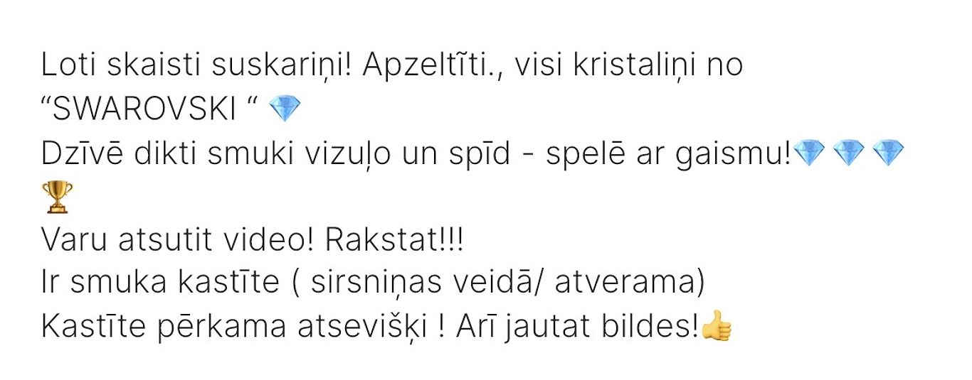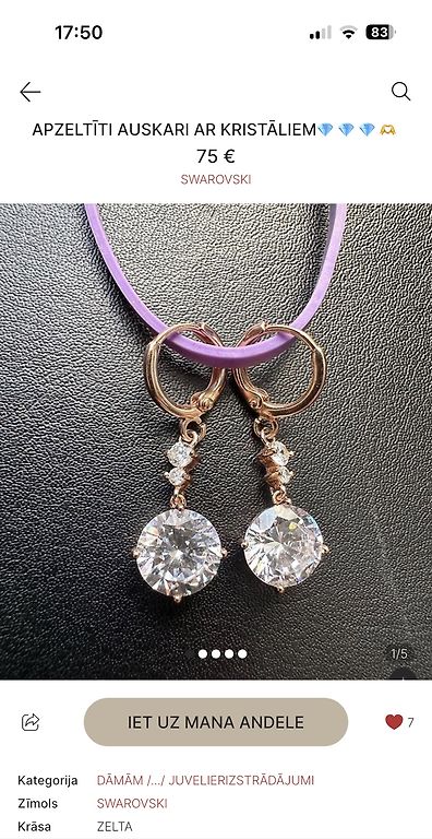 veiksmivisiemŠodien, 18:06Rokassprādze sudraba( ar provi) Cena: 28€ Auskariņi ar cirkona akmentiņiem, cena: 21€ Šodien, 18:06