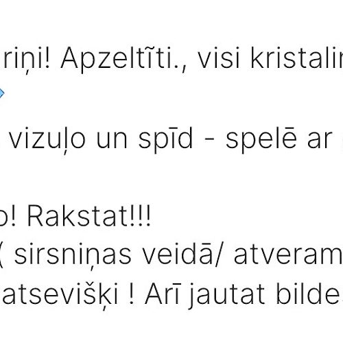 agnese.glaudaneŠodien, 17:33Dažādas ļoti superigas dāvaniņas un var arī izgatavot uz pasūtījumu :)) Šodien, 17:33