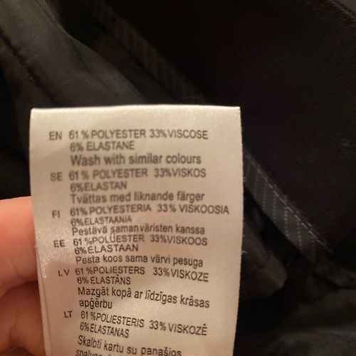 89% kokvilna, 9% poliesters, 2% elastāns.