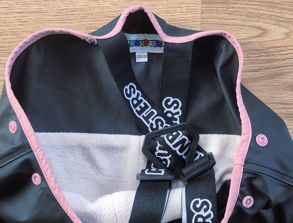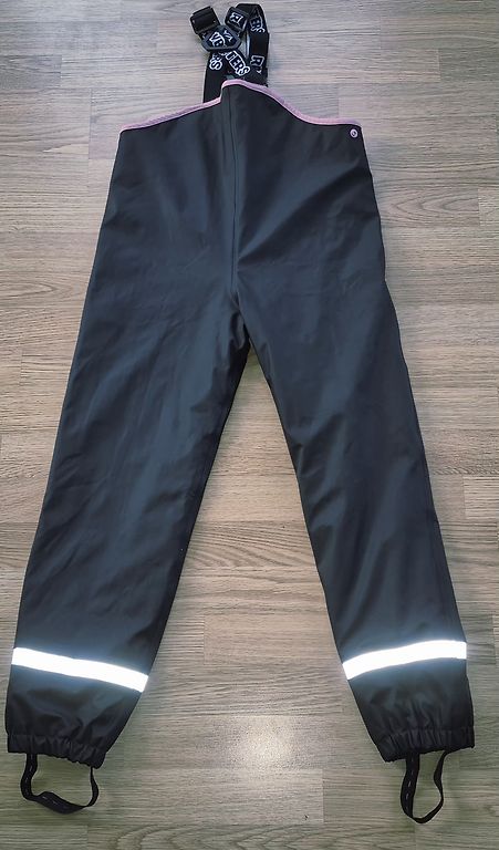 iivvaaToday, 14:20Mazlietotas,bez trūkumiem,gumijotas lietus bikses ar flīsa oderi. Sānos podziņas platuma fiksēšanai Lences regulējas Firma Rainbustets,birka 134/140cm Iekšstara 65cm,gurnos 44cm×2 15eiro Today, 14:20