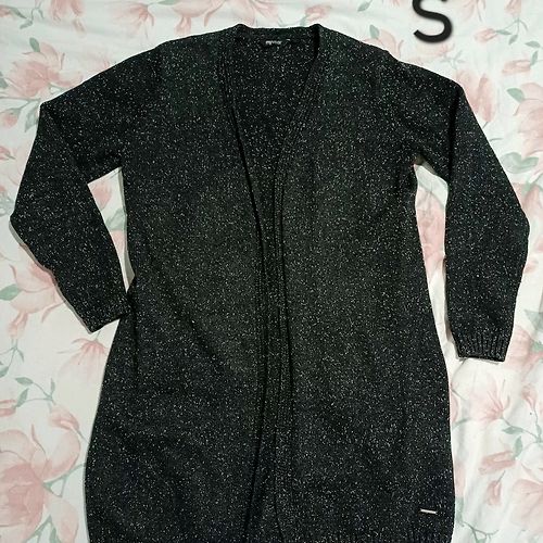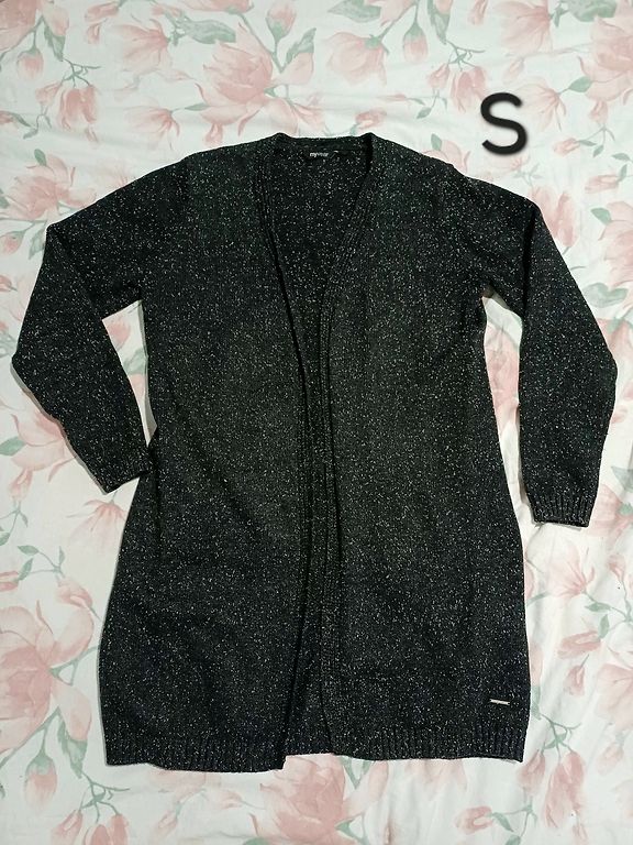 Adīta jaka, tumšpelēka, norādīts M izmērs, der drīzāk S.