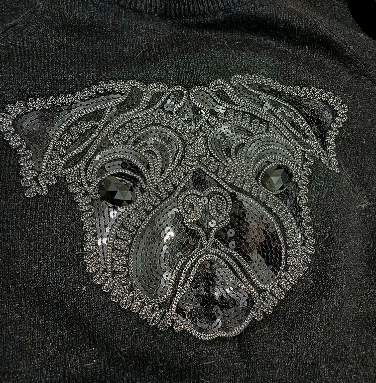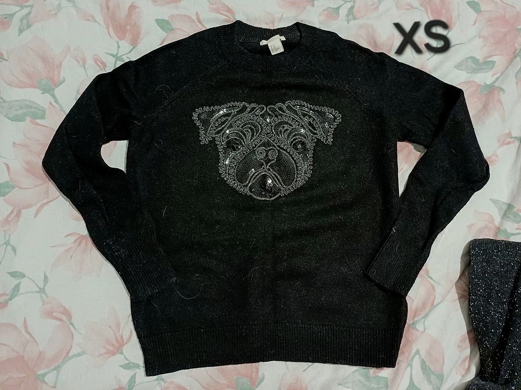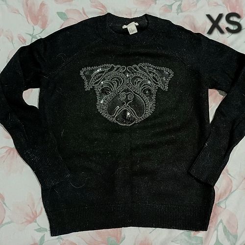 Džemperis ar "mopsi", melns, XS.