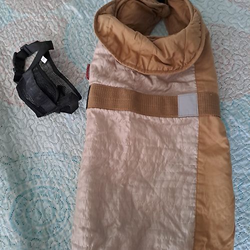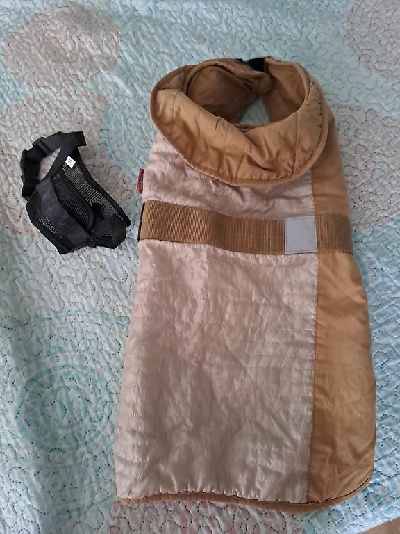 Drēbīte suņukam 50cm,var regulēt ar ļipučkām. Uzpurni arī var dabūt,ir sagrausts klipsis,bet var aiztaisīt ciet.Lūgums rakstīt privāti.