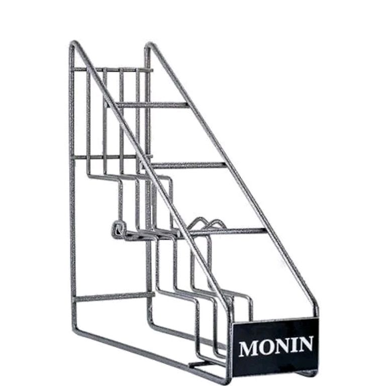 Monin sīrupu stends un sīrupa pumpis.
