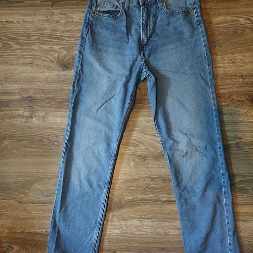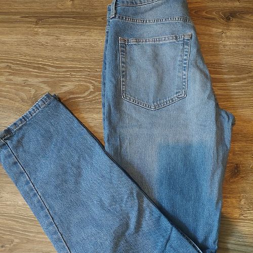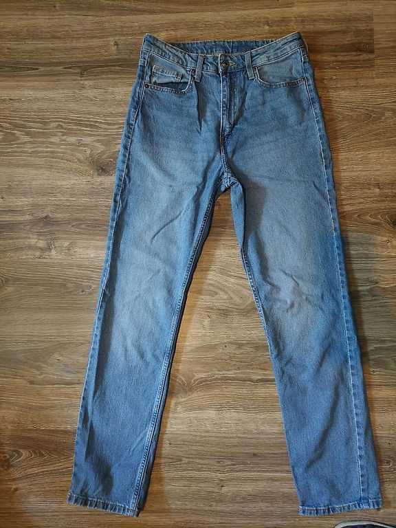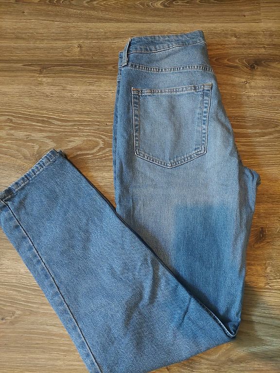 Pirmās jaunas - sludinājums tiko kā atjaunots, baltās džinsas - virs potītēm 5€, melnās brīvas, platas 10€ Zaļi raibās - brīvas, platas audums likrīgs, ļoti ērtas, staipīgas 10€, brūnās raibās 7€, Melnās - jaunas mājas variants, mīkstas bikses/legingi 4€