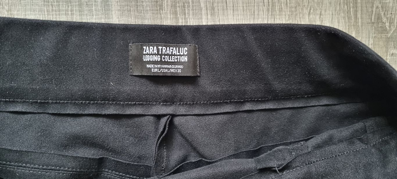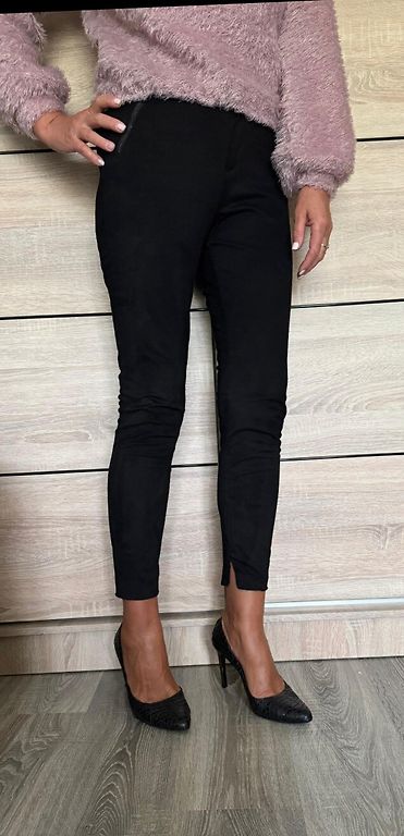 ZARA mākslīgā zamša bikses ar super augstu jostas vietu. Staru galos ir rāvējslēdži. Audums ir elastīgs. Josta 39cmx2, iekšstara 72cm. Uz biksēm ir L izm. Der uz M/L-L. Foto uz 176cm. 5EUR