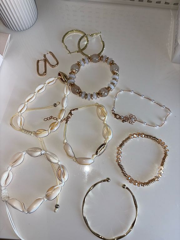 dažādas rotas, jaunas vai vienreiz uzvilktas.