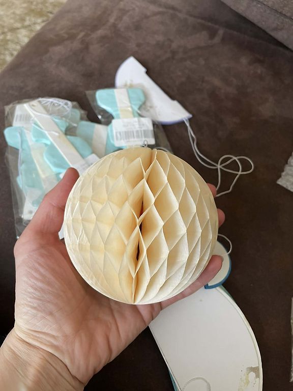 Lin Lin16. marts, 16:50Ir šādas saliekāmas dekorācijas.Līmējas ar dīvpusējo skoču.Mazie 2 bumbuļi,pavisām mazie 2 bumbuļi,2 vidēji un 5 lieli (20 cm).Un virtene (4,5 m).Viss kopā -5 eur 16. marts, 16:50