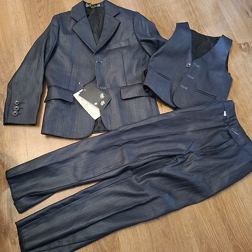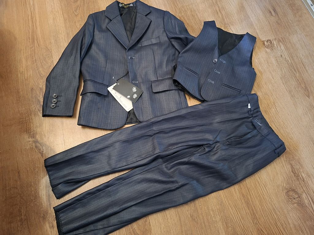 sanchiСегодня, 16:1260% vilna,40% poliesters. Biksēm gali,nav atšūti,var pielāgot garumu. Ārmala 68cm,iekšstara 46cm. Jostas vieta 25cm,nestaipot.Aizmugurē biksēm,gumija. Žaketei no piedurknes uz leju 45cm garums.Roka no piedurknes 40cm Līdz došu baltu kreklu 116 Сегодня, 16:12