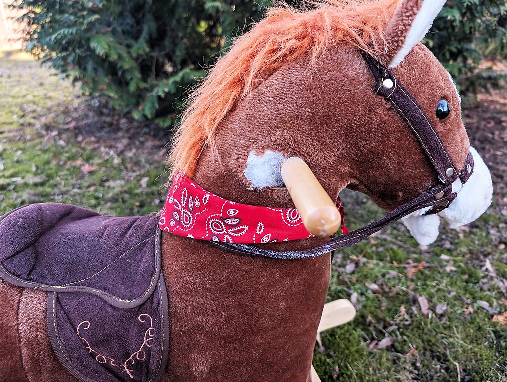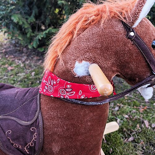 Atdodam zirdziņu, dzied, kustina asti. Bet ir jāsalabo galva - iekšā saluzusi detaļa, kas savieno galvu ar ķermeni, un kad ar spēku kustina galvu, tā iet pa labi. Atrodas Zolitūdē