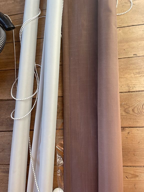 Žalūzijas pelēkās ir gaismu necaurlaidīgas 200garumā izvelkas in 105 platumā, brūnās gaismu aizturošas 175 garumā, platumā 165. Atroadas Katlakalnā, jābrauc pakaļ pašiem.