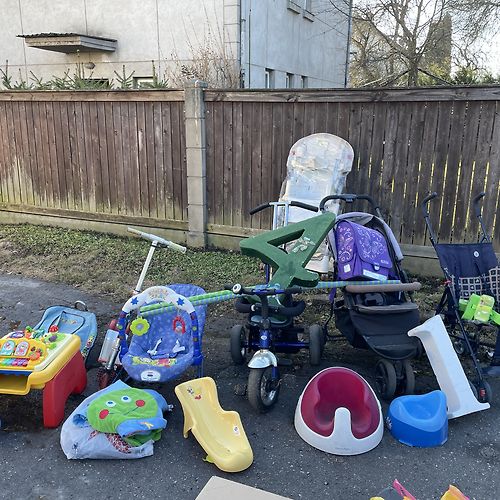 Ir vēl atdodamas lietas, bet viss jāiztīra. Vannas starīvs, podiņš, aktivitātes paklājiņš, vannas ieliknis un vannas krēsliņš. Barošanas krēsliņš ar galdiņu. Dažāds lietijums lietām.
