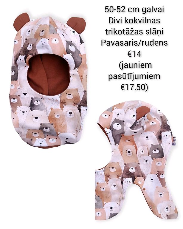 uqkidŠodien, 11:01Atkarībā no galvas apkārtmēra ir pieejamas šādas pavasara cepures. Citas cepures, tostarp, arī vasarai, arī tādas, kā Jums uz bildēm, vienslāņa cepures un vienslāņa šalles šuju uz pasūtījumu. UqKid handmade soctīklos un šeit🌿 Šodien, 11:01