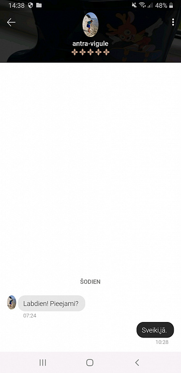 Man viņa arī rakstīja dažas dienas atpakaļ, vēlējās pirkt tikai klātienē un vēl mērīt. Cena bija 12€