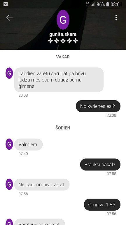 Hei, hei! Sargā savus datus! Atceries, ka e-pasts, whatsapp, sms darījumā nav vajadzīgs. Samaksu caur kurjeru saņemt NAV iespējams. Ja pircējs mēģina darījumu pārvirzīt ārpus portāla, atsakies no tā.