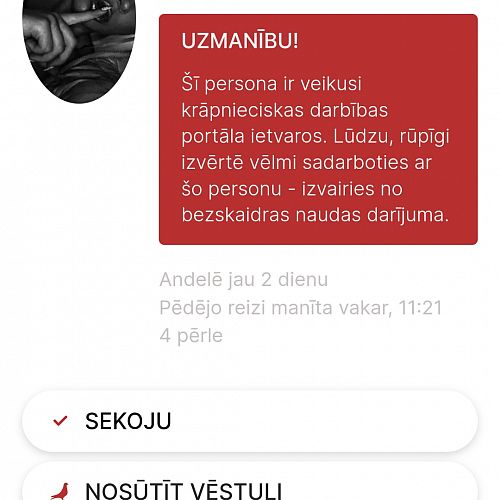 MEITENES,IESAKU BŪT UZMANĪGĀM, NO ŠĪ PROFILA LABĀK NEKO NEIEGĀDĀTIES!!