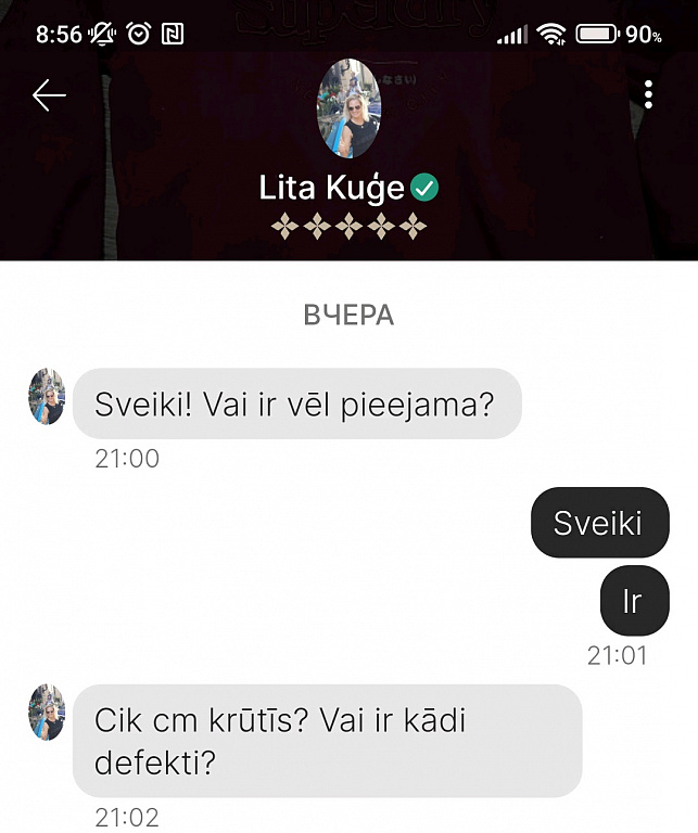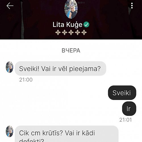 Sastapos ar gadījumu,ka tūliņ pirks preci un pajautā vai gadījumā nebraucu uz Rīgu,jo viņai vot ar pakomātiem nepatīk “čakarēties”😅.Man pa Rīgu gan patiktu meklēt viņu.Preces cena 3€.