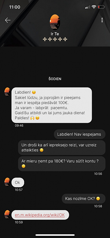 Vakar bija gadījums kad viena sieviete pirks džemperi,tūliņ sūtīs naudu un pajautā no kurienes esmu varbūt viņai būs pa ceļam.Atbildot pēc laika atteicās no preces.