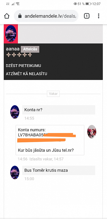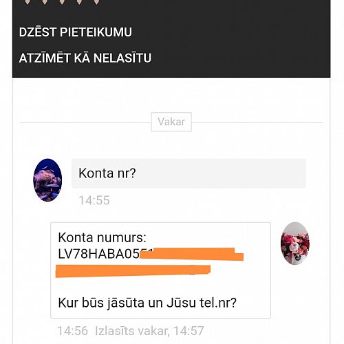 Tikko pajautāja konta numuru,kamēr rakstīju,atteicas no pērles. Kas tas par murgu. 😀Ko cilvēki ar to cenšas panākt...