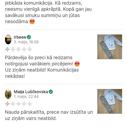 Dažas dienas pēc mana neveiksmīgā pirkuma, parādās vēl 2 negatīvas atsauksmes ar tādu pat scenāriju.