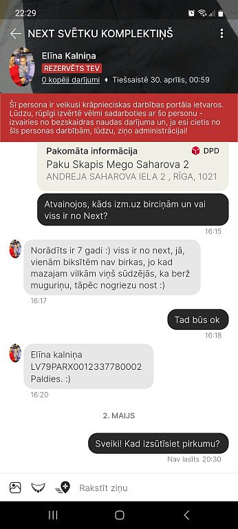 Vēlos brīdināt par šo pārdevēju-!!!! Elīna Kalniņa!!!!