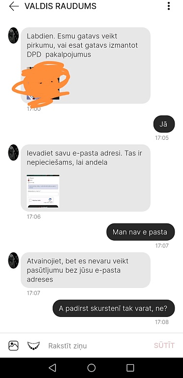 Izklausās pēc uzlauzta konta varbūt vai vispār kaut kāds bots. Bet jā, šis ir pilnīgs murgs. Piesakās, saka, ka ar Omniva starpniecību, sūtītajā bildē parādās atzīmēts DPD, tas jau pirmkārt, bet vispār pircējam pilnībā nekas nav jādara ar sūtījuma pieteikšanu. Jo tālāk, jo trakāk.