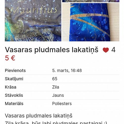 ivonna14. marts, 2023, 21:42Ir šāds šifona tipa plumales pareo jauns,ko var likt uz kakla arī. Pirkts Grieķijā ☺️ 14. marts, 2023, 21:42