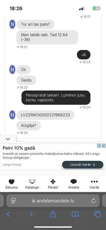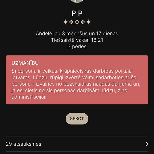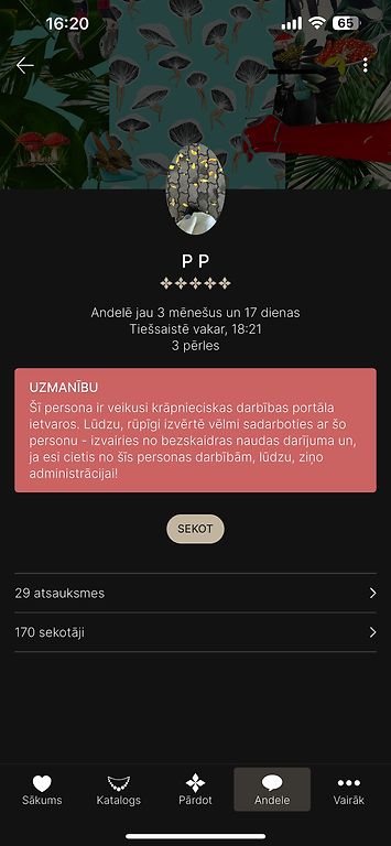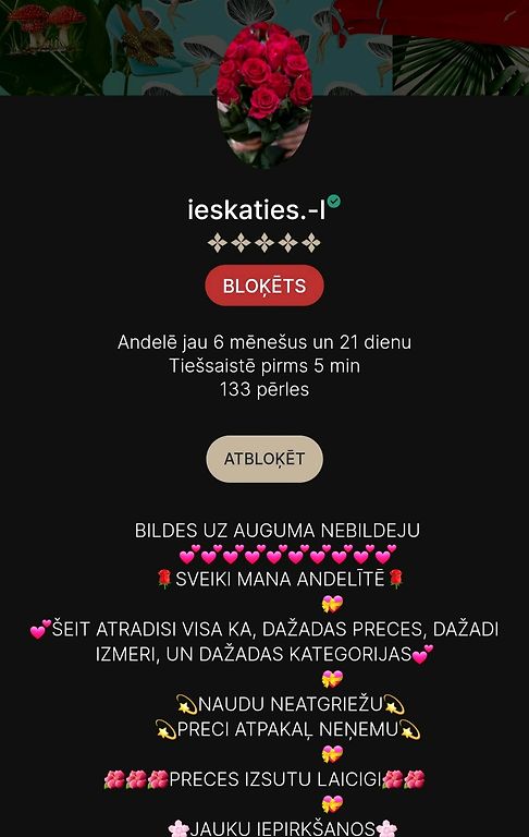 Andelē no sākuma darbojās zem vārda "favoritperles", profilu pārbaudīju, bija 25 5* atsauksmes, pērles bildi arī reverse searchoju google lai pārliecinātos, ka tā ir oriģināla, un paskatījos, vai nav krāpnieku sarakstā pirms pārskaitīju naudu. Diemžēl tomēr izrādījās krāpniece - naudu paņēma, uz ziņām vairs neatbild. Nu jau Andele ir uzlikusi "krāpnieces" statusu, dāma vārdu noņēmusi pavisam un arī mēģinājusi mani preventīvi nobloķēt visos soc.tīklos. Priecāšos ja varēs atsaukties dāmas, kas arī uzķērās uz šī - jo vairāk pierādījumu, jo labāk.