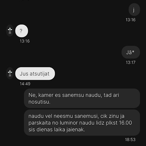 Nauda tika pārskaitīta, prece nav izsūtīta.