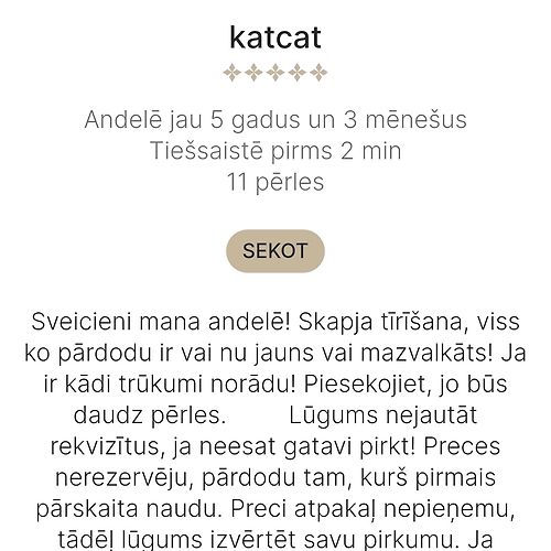 Sveicieni mana andelē! Skapja tīrīšana, viss ko pārdodu ir vai nu jauns vai mazvalkāts! Ja ir kādi trūkumi norādu! Piesekojiet, jo būs daudz pērles. Lūgums nejautāt rekvizītus, ja neesat gatavi pirkt! Preces nerezervēju, pārdodu tam, kurš pirmais pārskaita naudu. Preci atpakaļ nepieņemu, tādēļ lūgums izvērtēt savu pirkumu. Ja prece nav rezervēta, tad ir pieejama. Netiekos