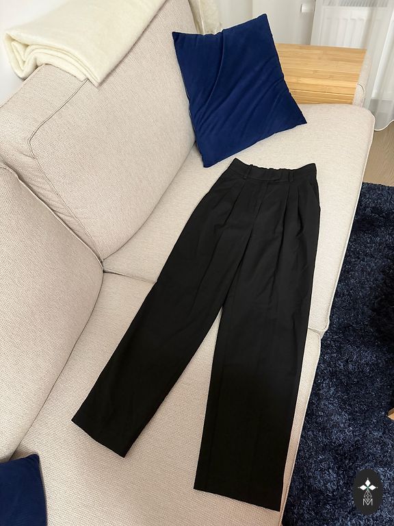 H&M dirbtinės odos kelnės. Storas audinys, šiek tiek siaurėjantys klešniai. Etiketėje nurodytas dydis 36, idealiai tinka XS dydžiui. Kaina 20,00 €.