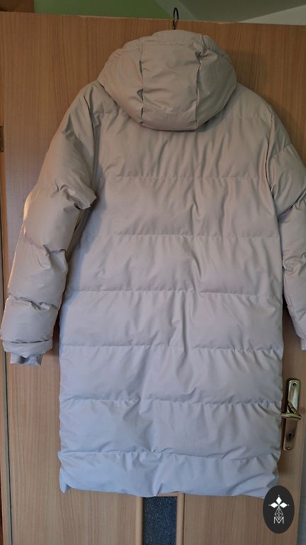 Švelniai rusvai rausva spalva, labai šilta, ilga iki kelių. Gobtuvas ir pūkas nuimami atskirai!
