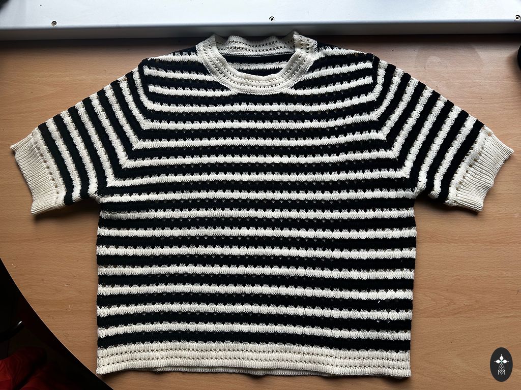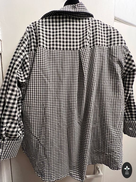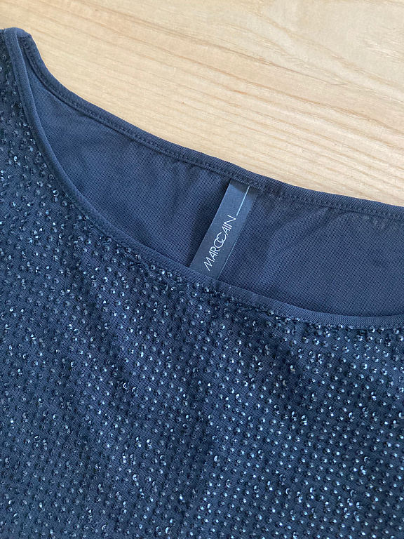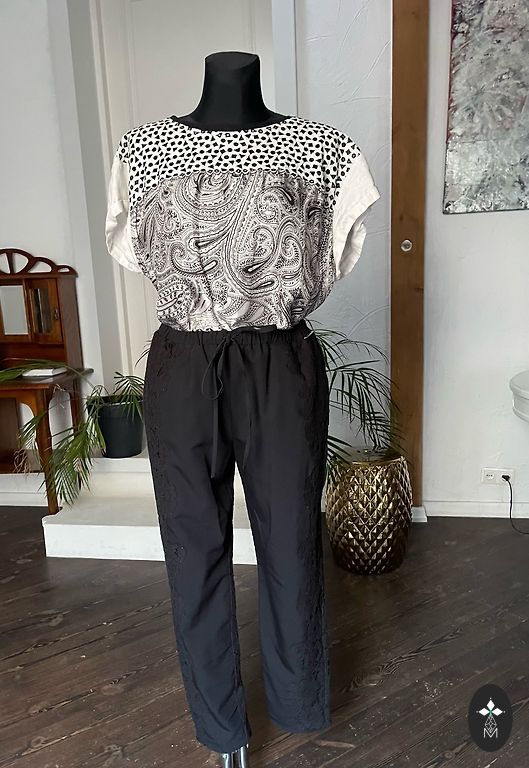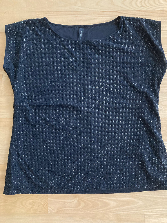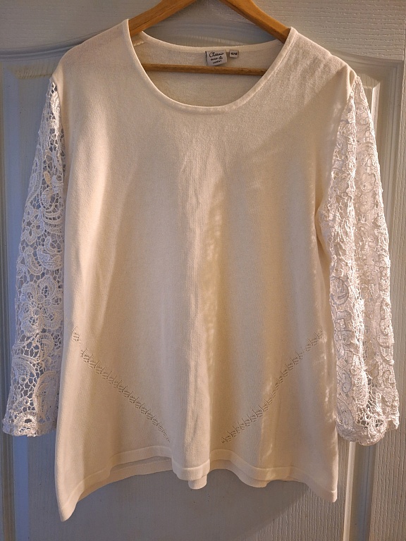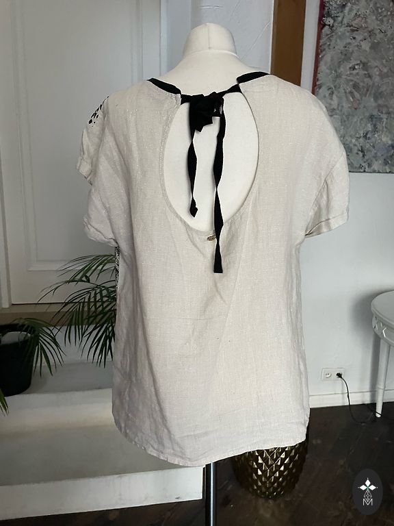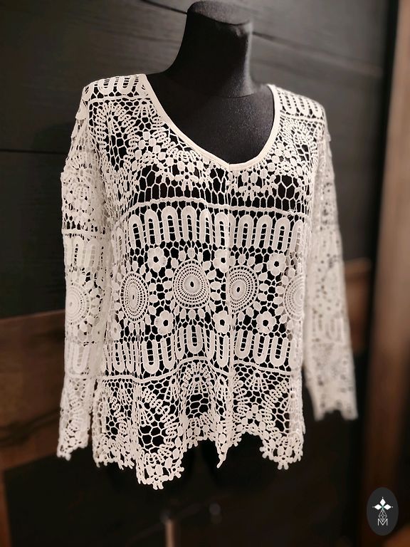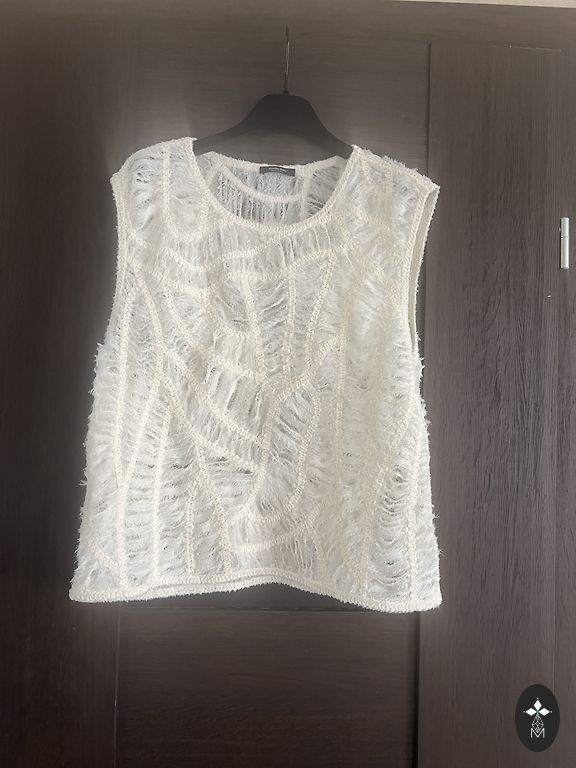 Очень красивая блузка/топ. Спереди и до середины спины, сзади белая ткань, похожая на вафельную. Очень красивая.