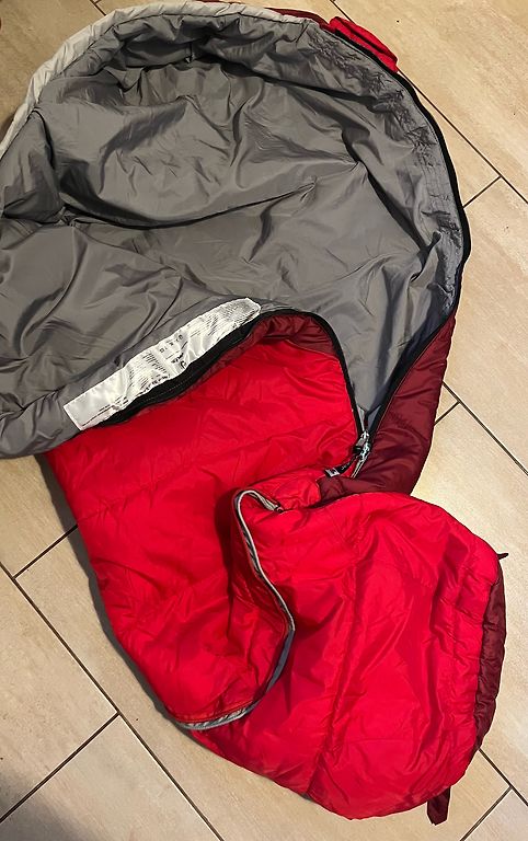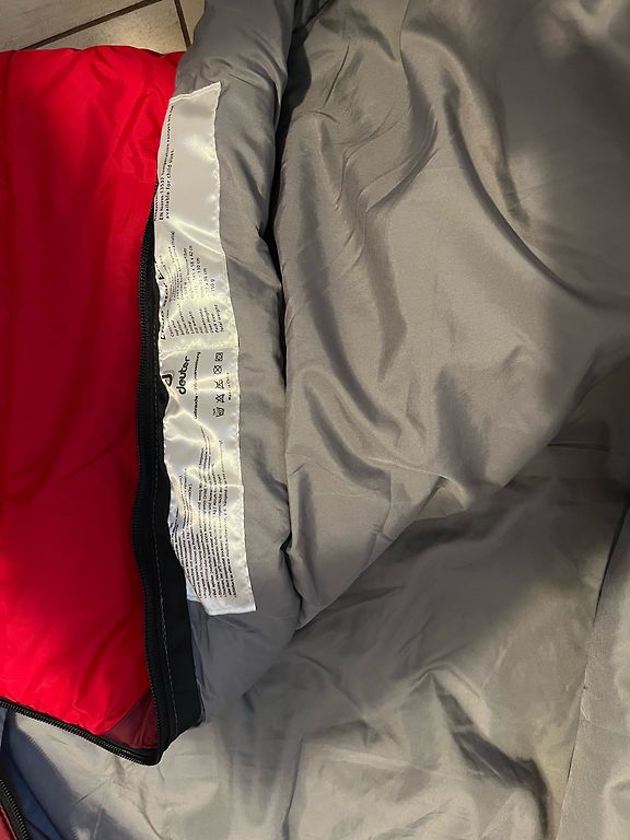 Красного цвета с черными и белыми акцентами. Очень качественная фирма - куртка влагостойкая и дышащая. Есть несколько карманов как внутри, так и снаружи. Внутри есть застегивающаяся нижняя часть (см. на 3-ем изображении), регулируемый размер по ширине рукава, а также съемный капюшон.