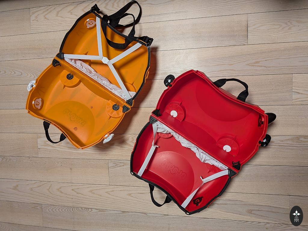 Ant lagaminų yra įbrėžimų, dingusi traukimo virvė.
