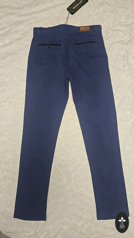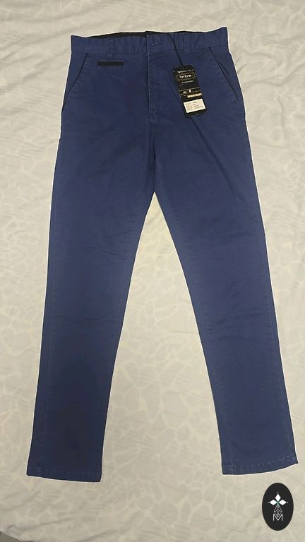 Men's dark blue pants with elastic waistband, drawstring, two side pockets. Size: M, inside leg length 70 cm, outside leg length 98 cm, waist width 40 (adjustable)