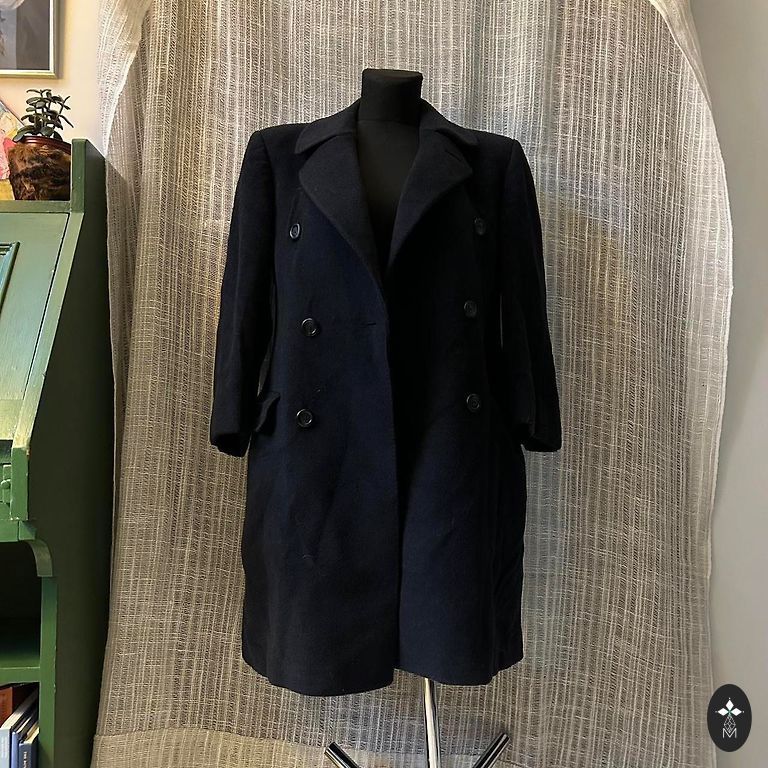 The coat has a wonderful composition, is lightweight, very soft, and the powdery-purple color is very beautiful, slightly tapered at the bottom. Length from shoulder: 85 cm, hips: 110 cm, chest: 110 cm. There are no pills, abrasions, or other defects. The condition is perfect.