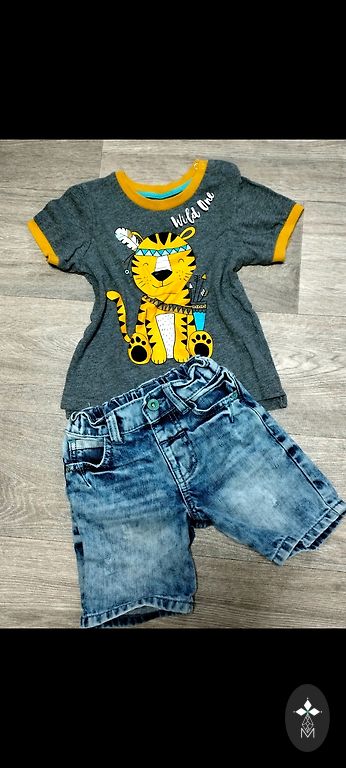 Komplekts puisītim. 98 izmērs. Vējjaciņa auduma ar flīsa oderīti. Drēbes labā stāvoklī. Vienīgi vienām džinsām viens mazs pleķītis. Pēdējā bildē drēbes dodu līdzi, tam ir pleķīši.
