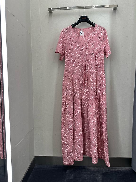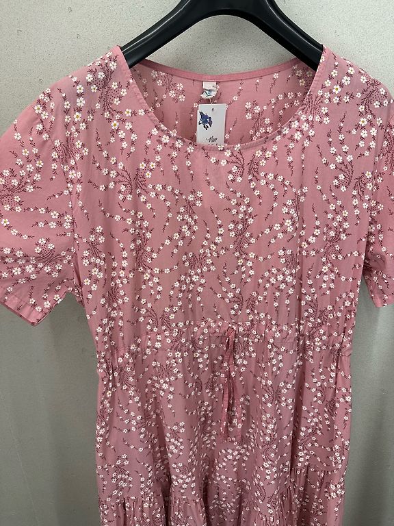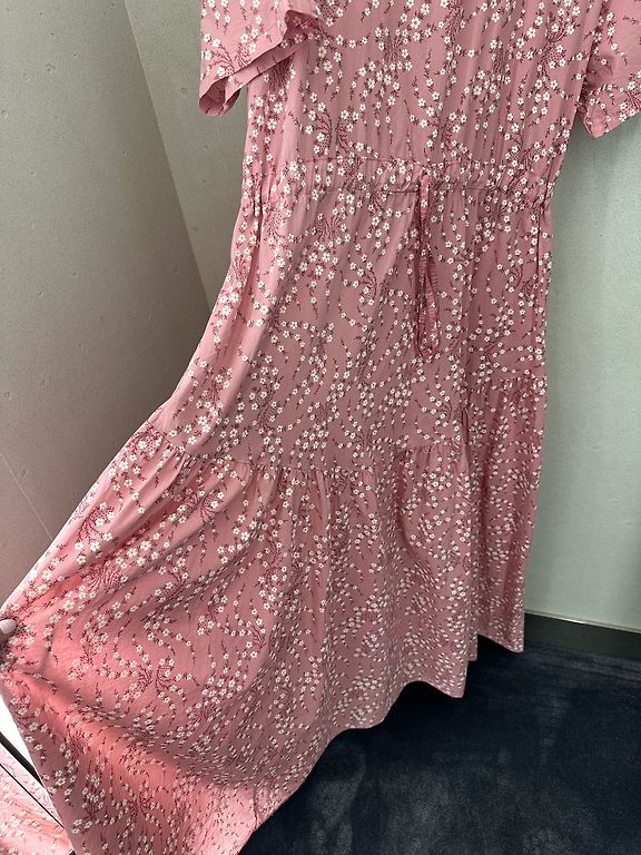 Materiāls ir forša, formu turoša kokvilna. Kuplinātas piedurknes, uz muguras slēptais rāvējslēdzis. Krāsa ir zemeņu sarkana, kā internetfoto. Nav rozā. Izmērs norādīts L. Derēs 40tajam un 42. izmēram