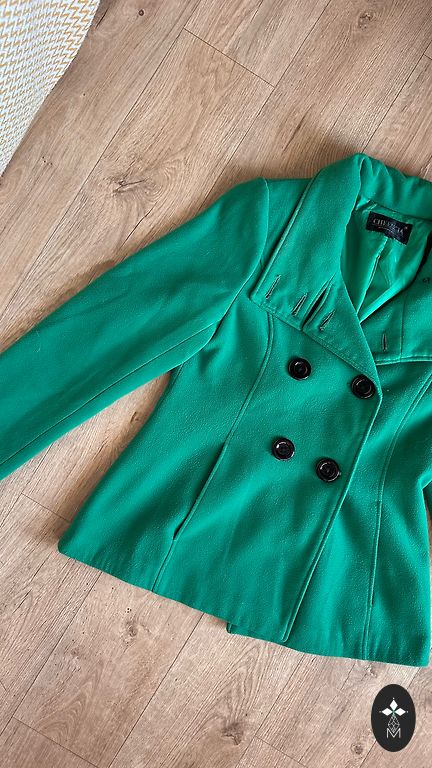 Элегантное межсезонное пальто. Длина от плеча ~ 89 см. Ширина под подмышками ~ 54 см. Размер 42. 98% хлопок, 2% эластан. Верхний слой 100% вискоза.