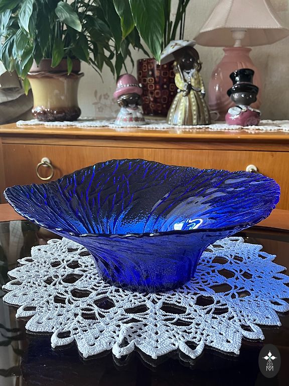 Gražus stiklinis dubuo, be įtrūkimų ar įskilimų. Storas, gražiai nuspalvintas stiklas... Graži gėlės forma 🌸 Skersmuo: 19 cm Aukštis: 10,5 cm